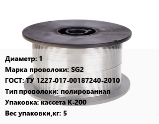 Проволока сварочная 1 Сталь: SG2 ГОСТ: ТУ 1227-017-00187240-2010 полированная кассета К-200 5