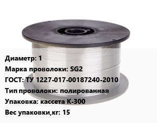 Проволока сварочная 1 Сталь: SG2 ГОСТ: ТУ 1227-017-00187240-2010 полированная кассета К-300 15