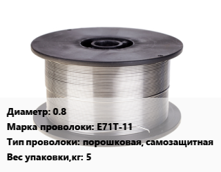 Проволока сварочная 0.8 Сталь: E71T-11 порошковая, самозащитная 5