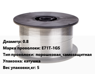 Проволока сварочная 0.8 Сталь: E71T-1GS порошковая, самозащитная катушка 5