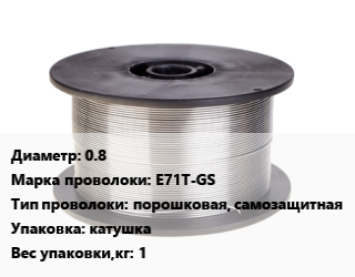 Проволока сварочная 0.8 Сталь: E71T-GS порошковая, самозащитная катушка 1