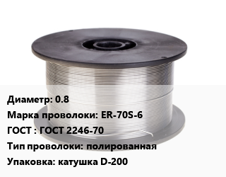 Проволока сварочная 0.8 Сталь: ER-70S-6 ГОСТ: ГОСТ 2246-70 полированная катушка D-200