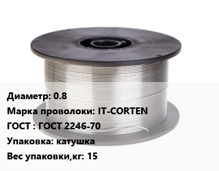 Проволока сварочная 0.8 Сталь: IT-CORTEN ГОСТ: ГОСТ 2246-70 катушка 15