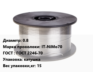 Проволока сварочная 0.8 Сталь: IT-NiMo70 ГОСТ: ГОСТ 2246-70 катушка 15