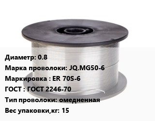 Проволока сварочная 0.8 Сталь: JQ.MG50-6 ER 70S-6 ГОСТ: ГОСТ 2246-70 омедненная 15