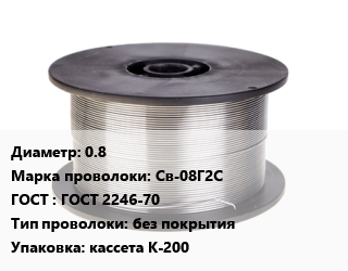 Проволока сварочная 0.8 Сталь: Св-08Г2С ГОСТ: ГОСТ 2246-70 без покрытия кассета К-200