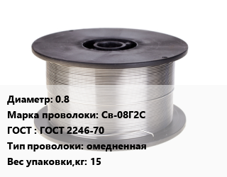 Проволока сварочная 0.8 Сталь: Св-08Г2С ГОСТ: ГОСТ 2246-70 омедненная 15