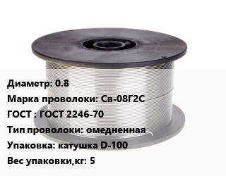 Проволока сварочная 0.8 Сталь: Св-08Г2С ГОСТ: ГОСТ 2246-70 омедненная катушка D-100 5