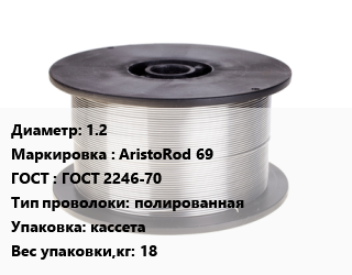 Проволока сварочная 1.2 AristoRod 69 ГОСТ: ГОСТ 2246-70 полированная кассета 18