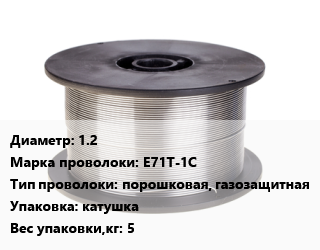 Проволока сварочная 1.2 Сталь: E71T-1C порошковая, газозащитная катушка 5, кг цена от 147.47 сом / т, где купить, условия доставки в Бишкеке и Чуйской области