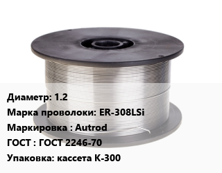 Проволока сварочная 1.2 Сталь: ER-308LSi Autrod ГОСТ: ГОСТ 2246-70 кассета К-300