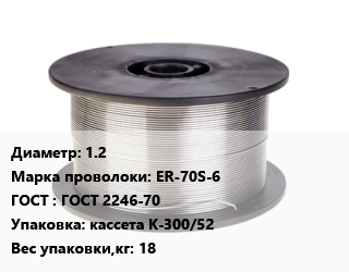 Проволока сварочная 1.2 Сталь: ER-70S-6 ГОСТ: ГОСТ 2246-70 кассета К-300/52 18