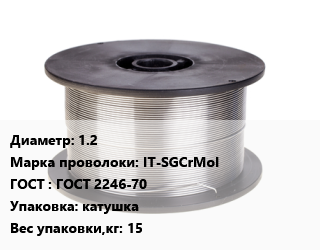 Проволока сварочная 1.2 Сталь: IT-SGCrMol ГОСТ: ГОСТ 2246-70 катушка 15