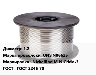 Проволока сварочная 1.2 Сталь: UNS N06625 NickelRod M NiCrMo-3 ГОСТ: ГОСТ 2246-70