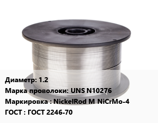 Проволока сварочная 1.2 Сталь: UNS N10276 NickelRod M NiCrMo-4 ГОСТ: ГОСТ 2246-70