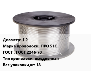 Проволока сварочная 1.2 Сталь: ПРО 51С ГОСТ: ГОСТ 2246-70 омедненная 18