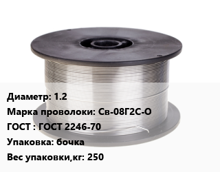 Проволока сварочная 1.2 Сталь: Св-08Г2С-О ГОСТ: ГОСТ 2246-70 бочка 250
