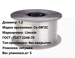 Проволока сварочная 1.2 Сталь: Св-08Г2С Lincoln ГОСТ: ГОСТ 2246-70 без покрытия катушка 5