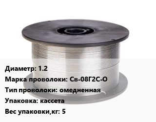 Проволока сварочная 1.2 Сталь: Св-08Г2С-О омедненная кассета 5