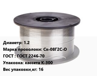 Проволока сварочная 1.2 Сталь: Св-08Г2С-О ГОСТ: ГОСТ 2246-70 кассета К-300 16