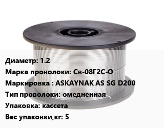Проволока сварочная 1.2 Сталь: Св-08Г2С-О ASKAYNAK AS SG D200 омедненная кассета 5