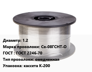 Проволока сварочная 1.2 Сталь: Св-08ГСНТ-О ГОСТ: ГОСТ 2246-70 омедненная кассета К-200