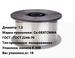 Проволока сварочная 1.2 Сталь: Св-08ХГСМФА ГОСТ: ГОСТ 2246-70 полированная кассета К-300 18, кг цена от 366.73 сом / т, где купить, условия доставки в Бишкеке и Чуйской области