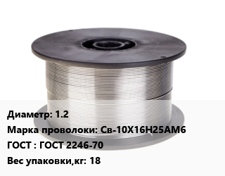 Проволока сварочная 1.2 Сталь: Св-10Х16Н25АМ6 ГОСТ: ГОСТ 2246-70 18