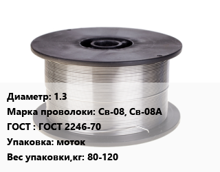 Проволока сварочная 1.3 Сталь: Св-08, Св-08А ГОСТ: ГОСТ 2246-70 моток 80-120