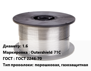Проволока сварочная 1.6 Outershield 71С ГОСТ: ГОСТ 2246-70 порошковая, газозащитная