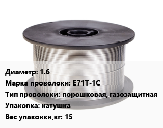 Проволока сварочная 1.6 Сталь: E71T-1C порошковая, газозащитная катушка 15