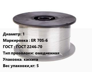 Проволока сварочная 1 ER 70S-6 ГОСТ: ГОСТ 2246-70 омедненная кассета 5