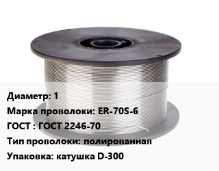 Проволока сварочная 1 Сталь: ER-70S-6 ГОСТ: ГОСТ 2246-70 полированная катушка D-300