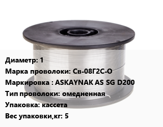 Проволока сварочная 1 Сталь: Св-08Г2С-О ASKAYNAK AS SG D200 омедненная кассета 5