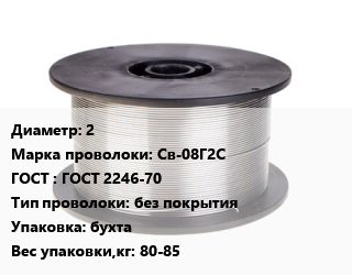 Проволока сварочная 2 Сталь: Св-08Г2С ГОСТ: ГОСТ 2246-70 без покрытия бухта 80-85