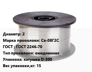 Проволока сварочная 2 Сталь: Св-08Г2С ГОСТ: ГОСТ 2246-70 омедненная катушка D-300 15