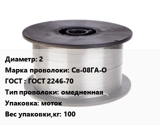 Проволока сварочная 2 Сталь: Св-08ГА-О ГОСТ: ГОСТ 2246-70 омедненная моток 100