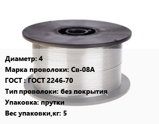 Проволока сварочная 4 Сталь: Св-08А ГОСТ: ГОСТ 2246-70 без покрытия прутки 5