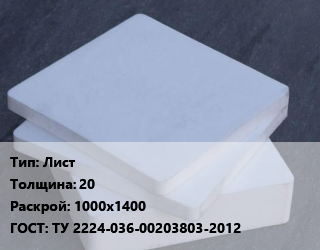 Капролон плита Лист s=20 1000х1400 ТУ 2224-036-00203803-2012