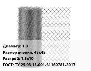 Сетка-рабица 1.8 Ячейка: 45х45 1.5х10 ГОСТ: ТУ 25.93.13-001-61160781-2017