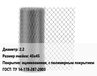 Сетка-рабица 2.2 Ячейка: 45х45 оцинкованная, с полимерным покрытием ГОСТ: ТУ 14-178-287-2003