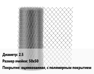 Сетка-рабица 2.5 Ячейка: 50х50 оцинкованная, с полимерным покрытием