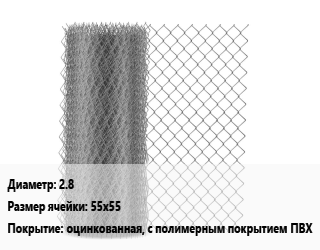 Сетка-рабица 2.8 Ячейка: 55х55 оцинкованная, с полимерным покрытием ПВХ