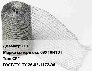 Сетка рукавная (рукав сетчатый) 0.3 Сталь: 08Х18Н10Т СРГ ГОСТ: ТУ 26-02-1172-96
