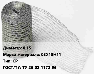 Сетка рукавная (рукав сетчатый) 0.15 Сталь: 03Х18Н11 СР ГОСТ: ТУ 26-02-1172-96