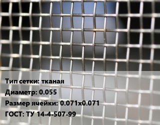 Сетка тканая тканая d=0.055 Ячейка: 0.071х0.071 ГОСТ: ТУ 14-4-507-99