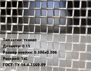 Сетка тканая тканая d=0.11 Ячейка: 0.306х0.306 1хL ГОСТ: ТУ 14-4-1569-89