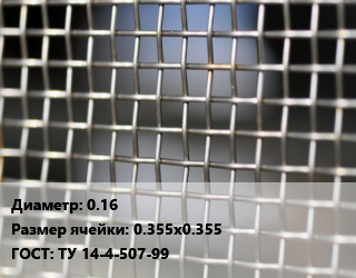 Сетка тканая 0.16 Ячейка: 0.355х0.355 ГОСТ: ТУ 14-4-507-99
