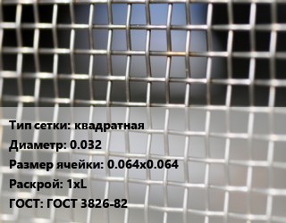 Сетка тканая квадратная d=0.032 Ячейка: 0.064х0.064 1хL ГОСТ: ГОСТ 3826-82