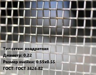 Сетка тканая квадратная d=0.22 Ячейка: 0.55х0.55 ГОСТ: ГОСТ 3826-82